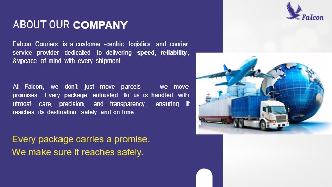 At Falcon Couriers, we don’t just move parcels—we move promises. Whether you’re sending an urgent document, a valuable package or a heartfelt gift. we ensure it reaches its destination safely, on time and with complete transparency.
